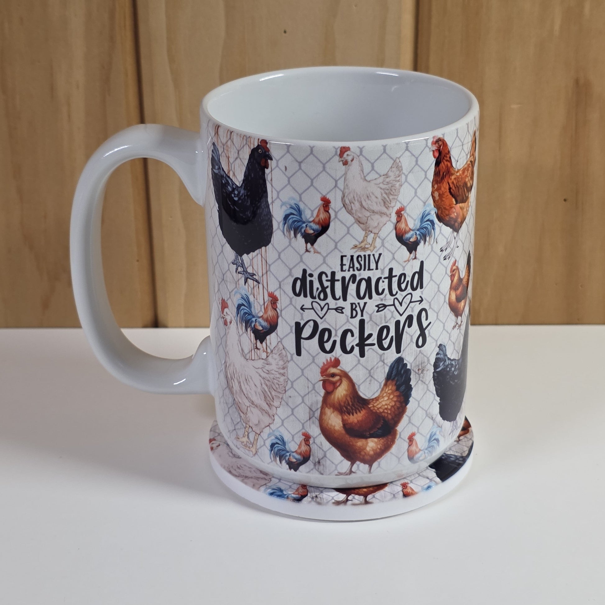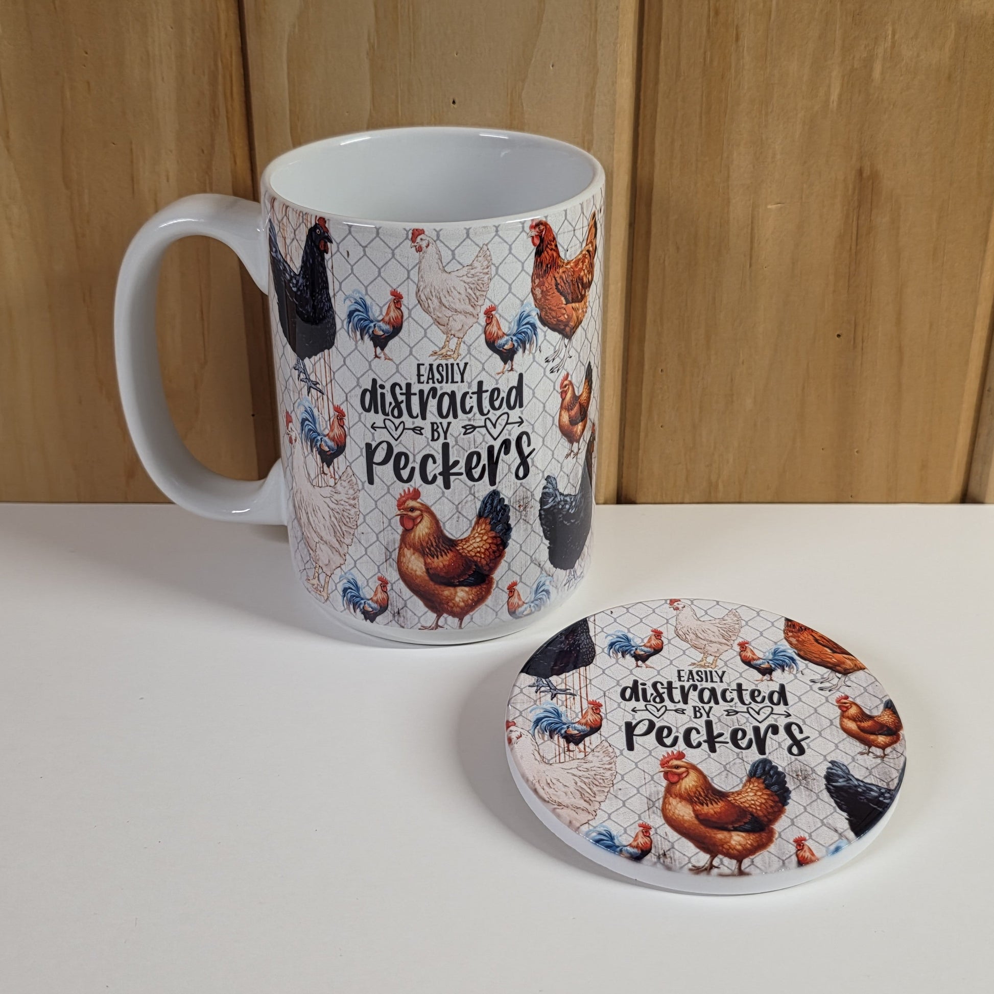 This farmhouse chicken set includes a 15 oz ceramic mug and matching coaster with a playful design. Whether you’re sipping coffee before feeding the flock or sharing a laugh with friends, this set is sure to bring humor and charm to your daily routine.