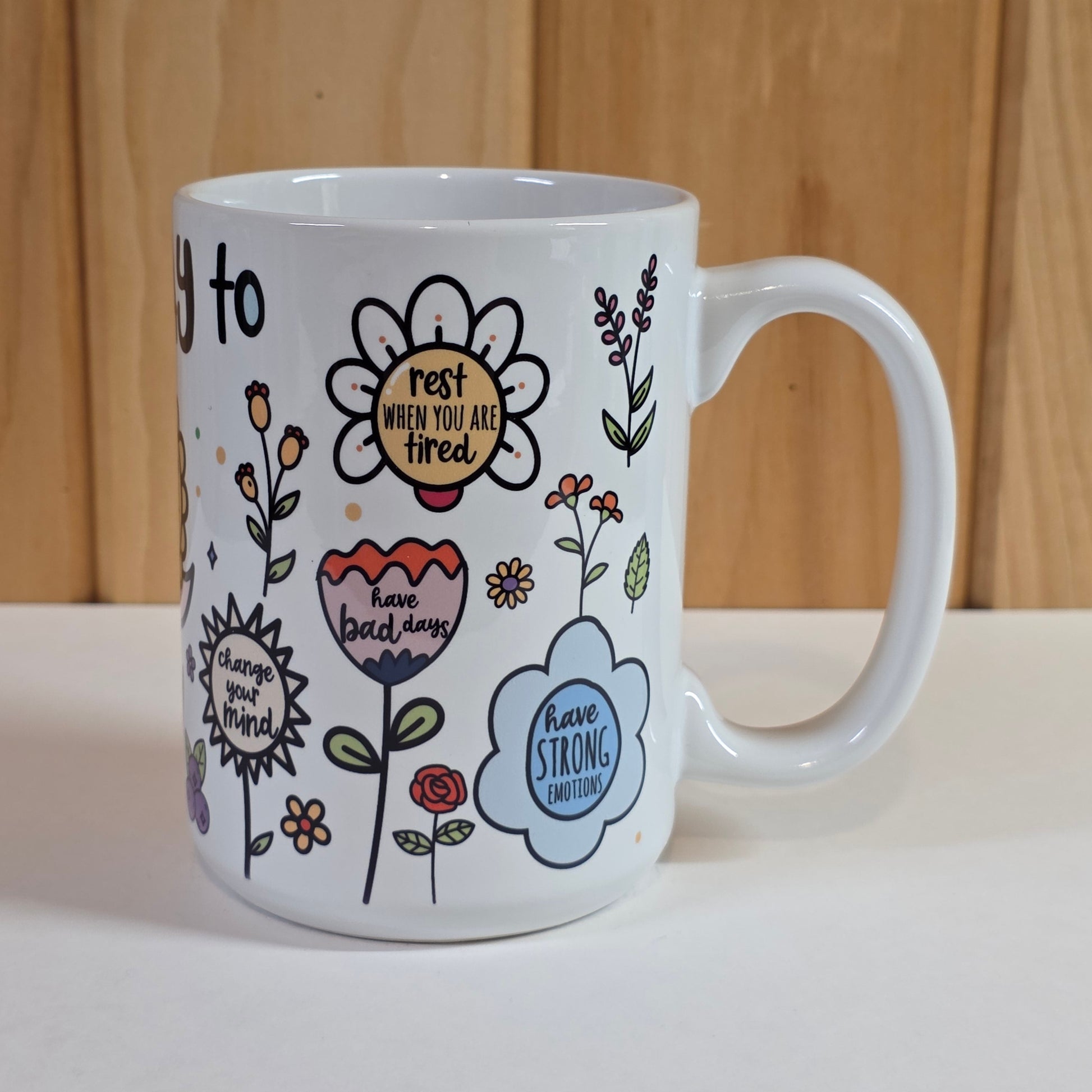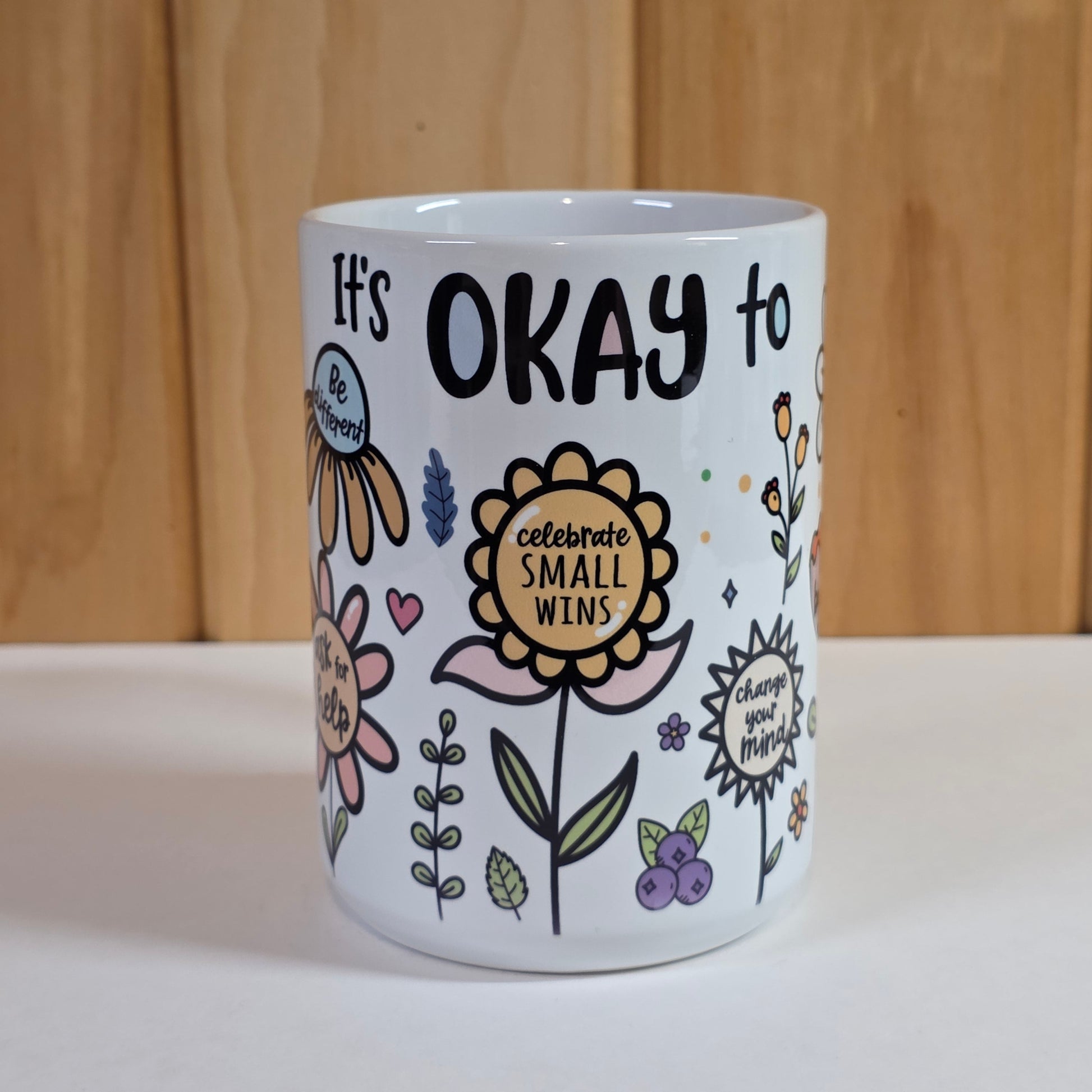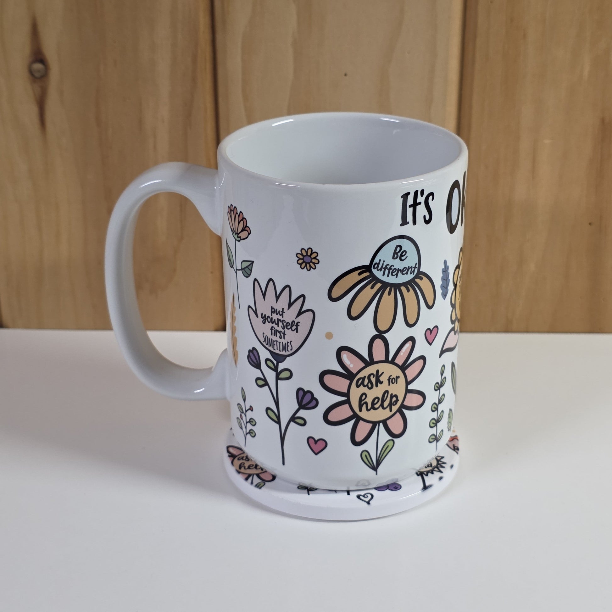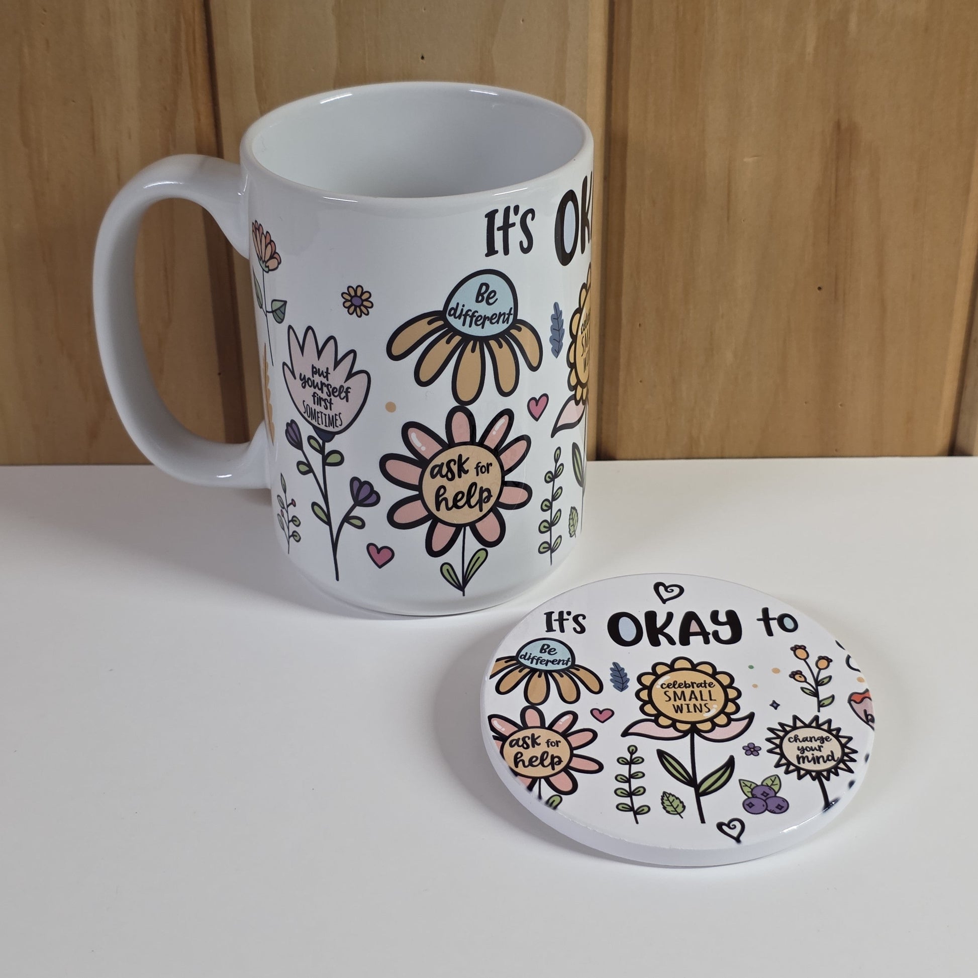 This “It’s Okay” set includes a 15 oz ceramic mug and matching coaster covered in cheerful floral designs and affirmations like “celebrate small wins,” “ask for help,” and “be different.” It’s a bright, supportive reminder that every sip is a chance to be kind to yourself. Perfect as a motivational mug, self-care gift, or everyday boost of encouragement.